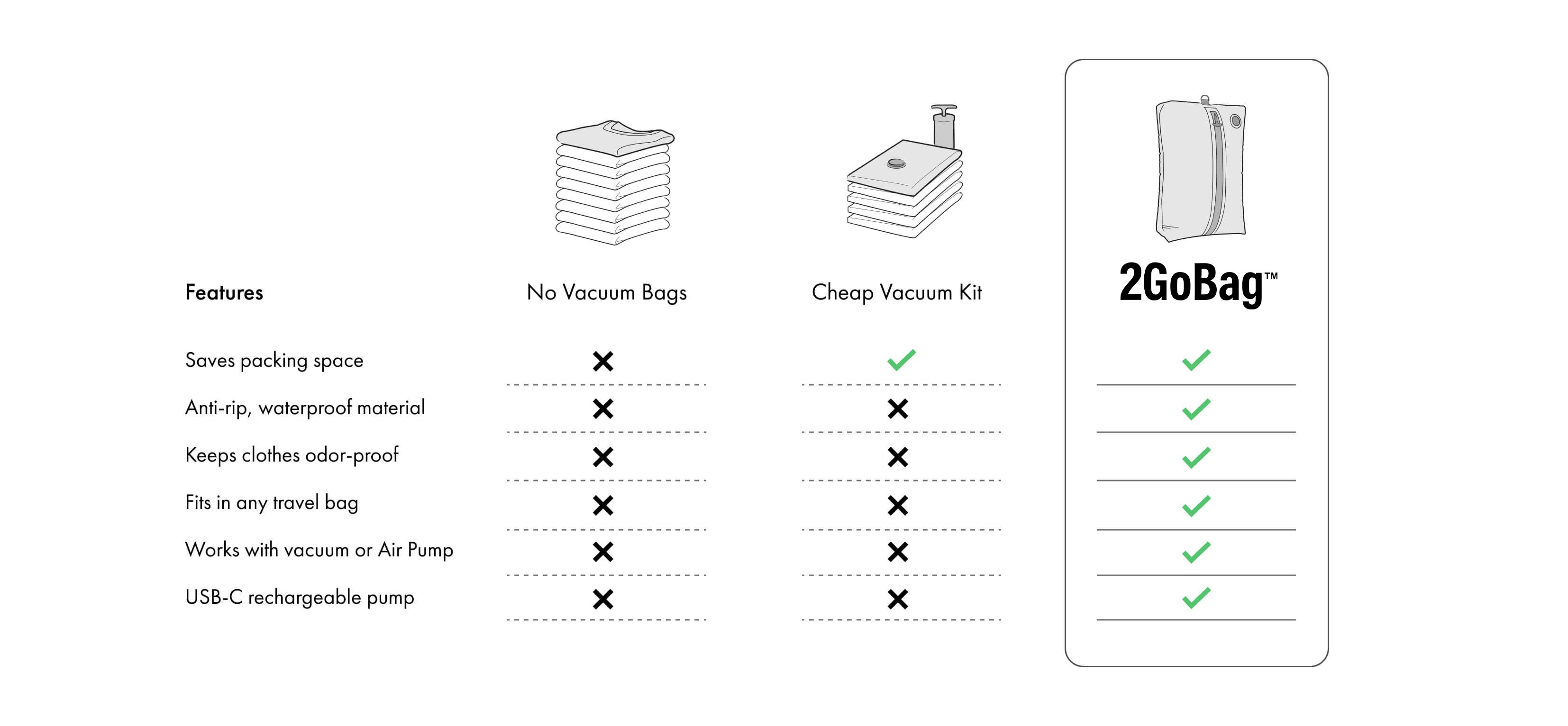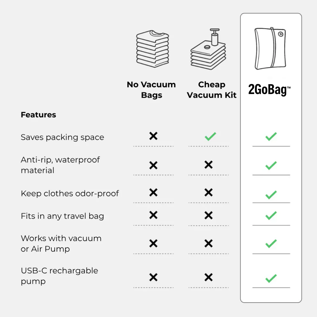 We make packing simple. From space-saving design to durable, airtight protection, our vacuum bags are built to help you pack smarter, travel lighter, and stress less.